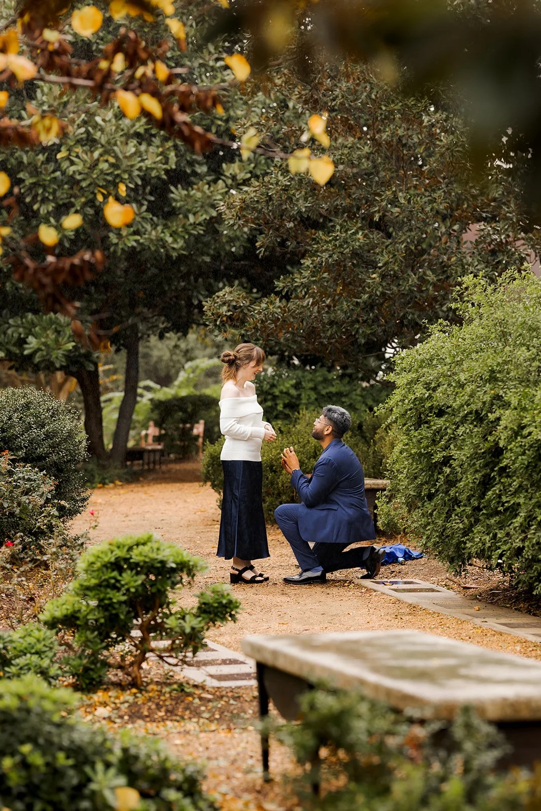 The strongest proposal locations I’ve photographed in Hermann Park aren’t the open lawns, but the shaded garden paths and quieter corners. These areas offer softer light and fewer distractions, allowing emotion to stay front and center.