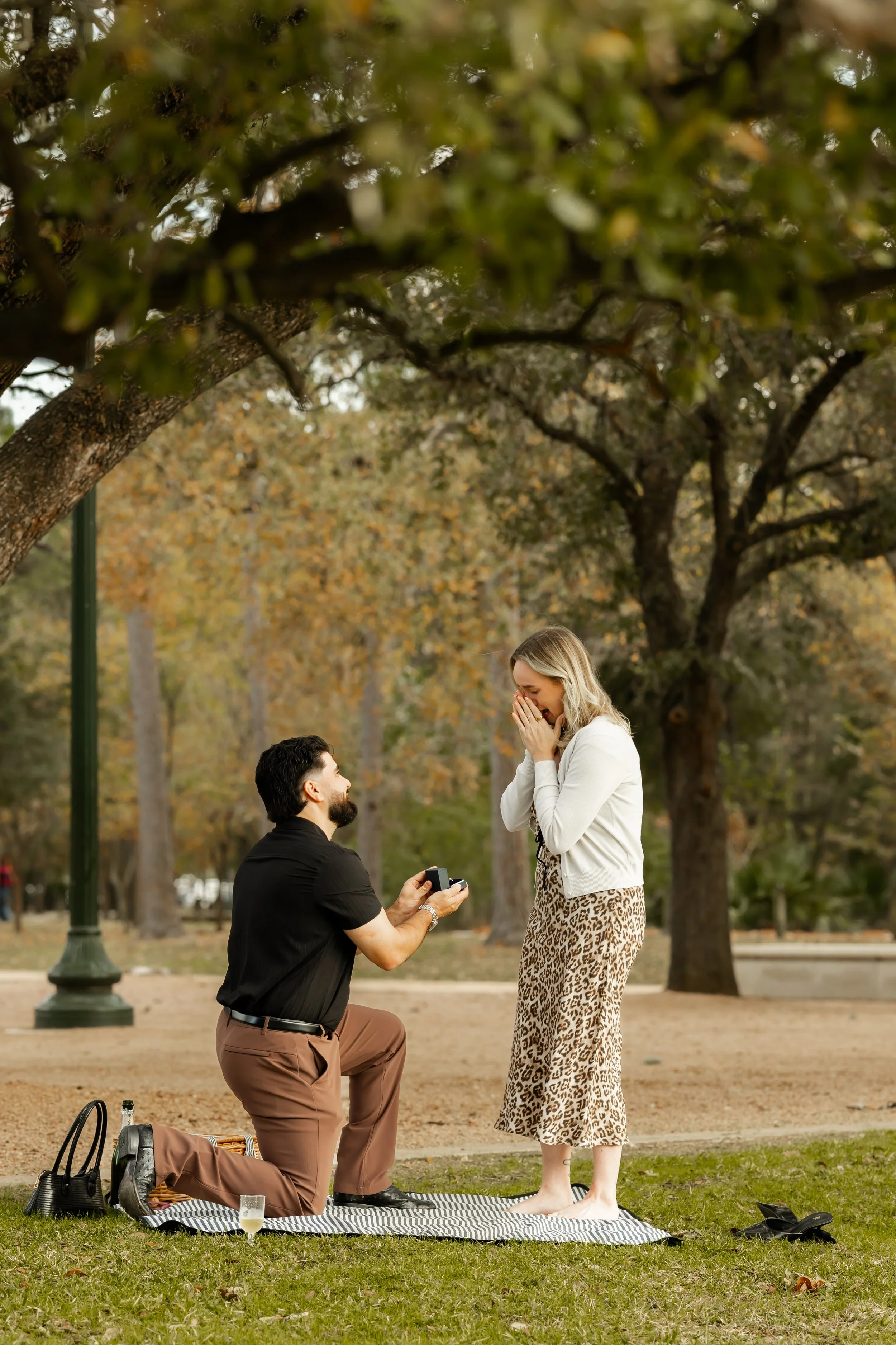 Street-level proposals in downtown Houston create a modern, documentary feel that’s less about perfection and more about real life unfolding. I’ve photographed proposals along sidewalks and urban corridors where the moment felt spontaneous and authentic.